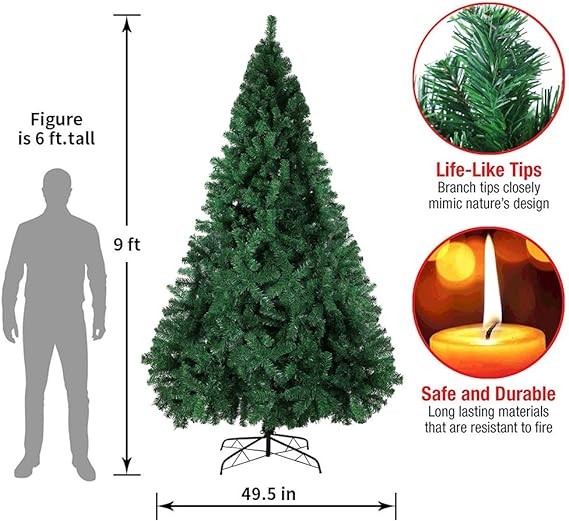 ?Easy to assemble—This 9-foot indoor Christmas tree stands tall and is equipped with 1850 sturdy branches tips. It is simple to assemble as well as disassemble with a hinged composition. Please store the Christmas tree in a cool dry place away from sunlight after disassembly.
