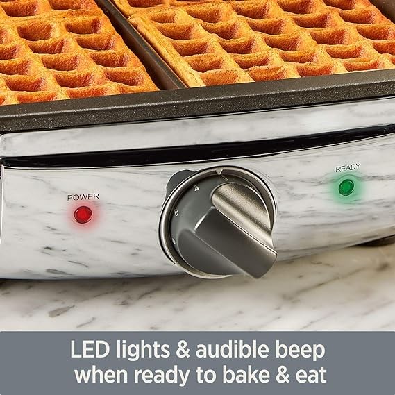 • Automatically alerts you when you need to pour batter or when your waffle is done