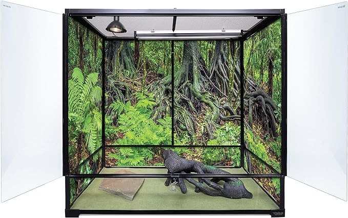 • Probably most important is our customer service and years of experience; actually having various reptiles of our own and breeding bearded dragons. Quick email responses; specific to your questions about assembly and setup. We are here in the US, communicating with intelligible English. We also offer a practical approach to “customizing” your terrarium habitat with effective lighting fixtures, aesthetic 3-sided backgrounds, larger habitat accessories and practical reptile carpet.