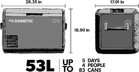 DOMETIC CFX3 55-Liter Portable Refrigerator and Freezer with ICE MAKER, Powered by AC/DC or Solar