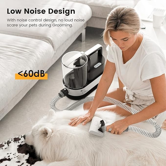 • ?【Low Noise Design】Pet vacuum cleaner has 3 suction speeds and low noise design, making pets feel comfortable and no longer afraid of haircuts. We suggest grooming your pet with brush before trimming pet hair, give the pet some snacks, and use it from the first gear to avoid pet tension due to the noise of the vacuum cleaner. Extension hose is long enough (59 inch) to keep the vacuum away from the pet, reduce the pet's pressure and discomfort, which makes the grooming experience more pleasant