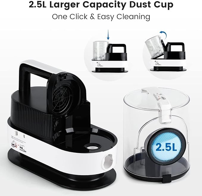 • ?【2.5L Large-Capacity &Easy Empty】The dog grooming kit is equipped with a larger detachable 2.5L dustproof cup, which has 65% more capacity than other products, and is enough to hold more pet hair without frequent emptying during beauty. The removable dustproof cup is equipped with a cover and a quick release button, which is easy to empty. Open the cover of the removable dustbin, then pour all the hair directly into the dustbin, and quickly clean up after combing