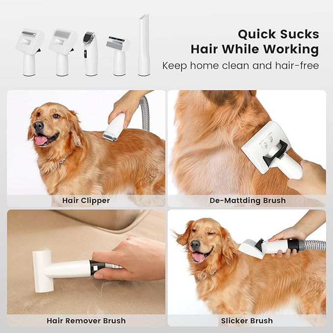 HAPPY HACHI Pet Grooming Vacuum Kit & Dog Hair Vacuum, Dog Vacuum Brush for Shedding Grooming with 2.5L Dust Cup and 5 Grooming Tools, Low Noise Pet Hair Remover for Dog Cat, Home Cleaning