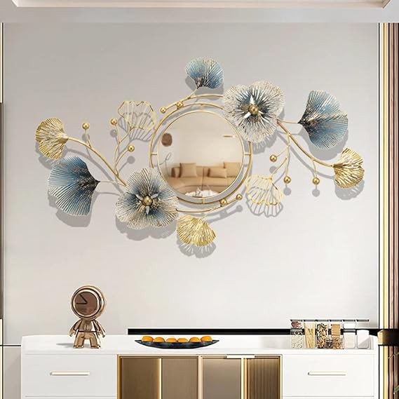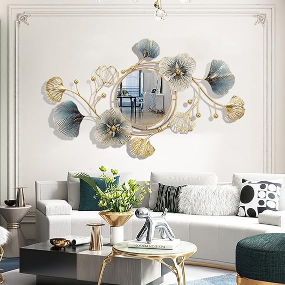 Metal Wall Mirrors Decor for Living Room Ginkgo Leaf Design 47" Big Wall-Mounted Mirrors Large Wall Decor for Entryway Vanity Bedroom Living Room Bathroom