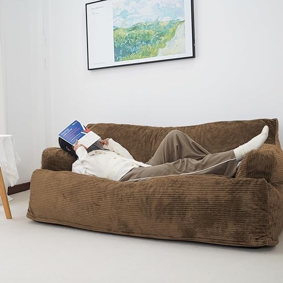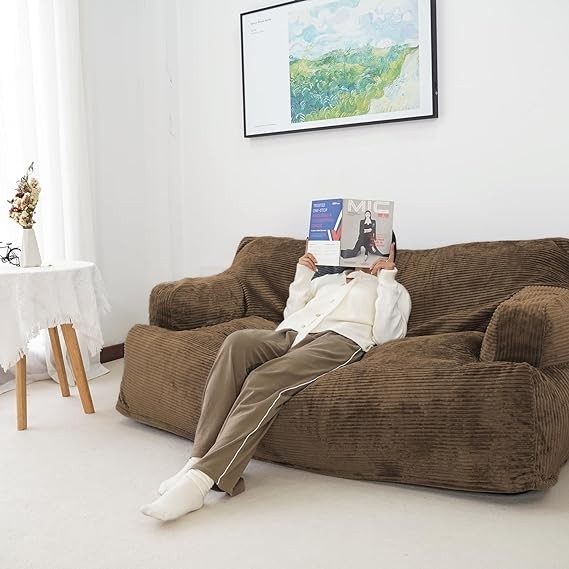 N&V Giant Twin Size Bean Bag Sofa, Foam Filling Floor Sofa, Includes Removable and Machine Washable Cover (Brown)