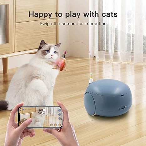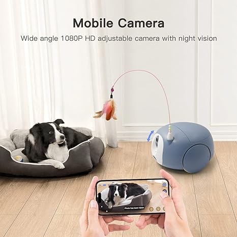 • [Adjustable Cat Teaser] Removable cat teaser can be moved around within the app to play with pets or removed from Pumpkii device.