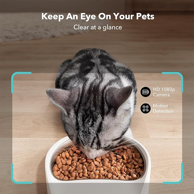 • Smart Notifications and Indicators: 1080P HD video auto-captures the pet eating and autOmatically stores the video (SD card required). Your phone gets notifications when the food/ battery level is low, when a blockage occurs, WiFi is disconnected, the feeder stops working or has other problems The infrared sensor keeps checking and stops food dispensing if the food outlet is blocked.