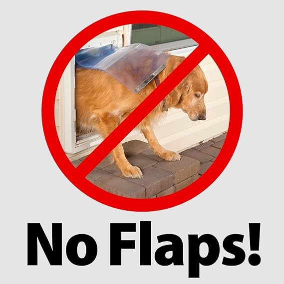 Never buy replacement flaps again. Solid high impact, chew proof acrylic panels open and close tight. Keeps heating and cooling inside your home.