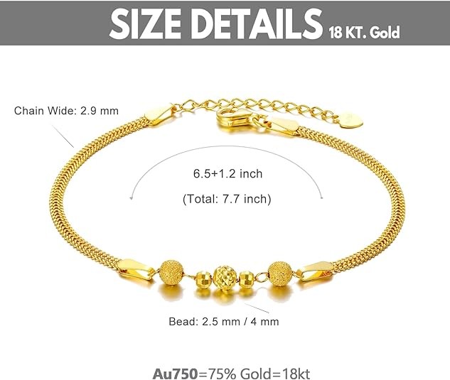 • 【Gift for Her】 The 18 carat gold bracelet packaged in a box is a great gift for wife, daugher, mother, or girlfriend.