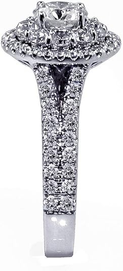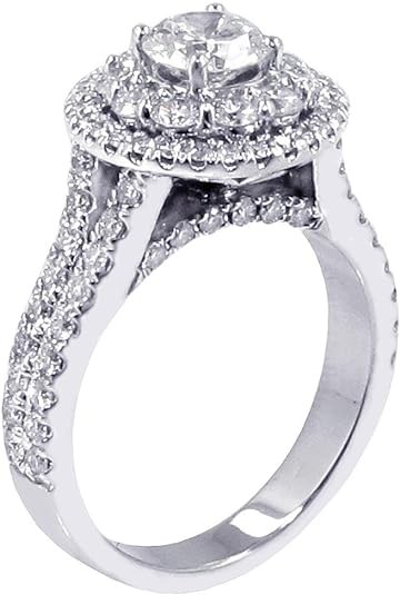 VIP Jewelry Art 2.30 CT TW GIA Certified Split Shank Halo Diamond Engagement Ring in 18k White Gold (I, VVS)