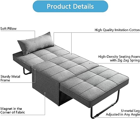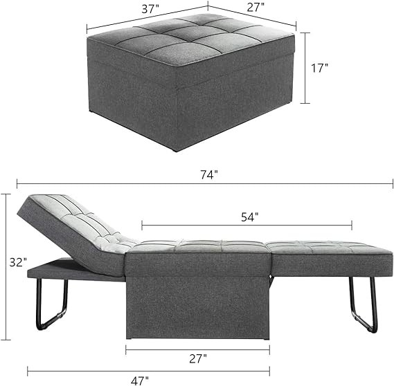 • ?CONVERTIBLE DESIGN: The convertible sofa bed can be used as an ottoman in normal. It can be easily and quickly converted into a sofa, lounger, or bed to meet your various and versatile needs and no longer worry about unexpected guests.