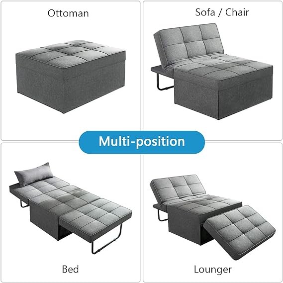 Vonanda Sofa Bed, Convertible Chair 4 in 1 Multi-Function Folding Ottoman Modern Breathable Linen Guest Bed with Adjustable Sleeper for Small Room Apartment,Dark Gray